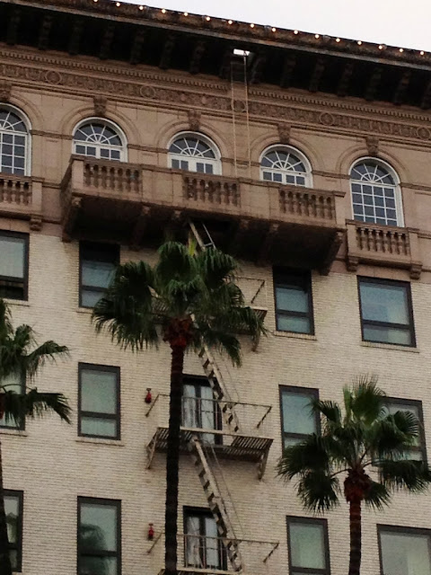 We think the top part looks like where she was sitting outside and the fire escape looks like the end of the movie, her apartment where she lived. One of the girls was going to watch the movie to check it out.